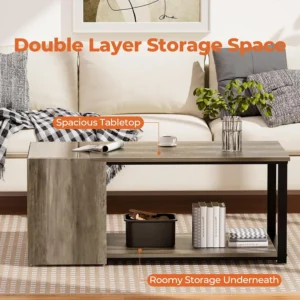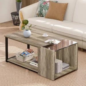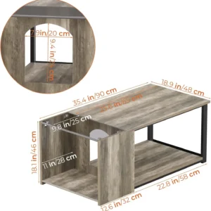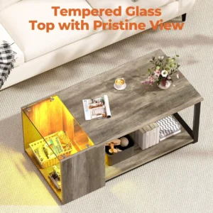 Coffee Table for Small Living Room, Modern Center Tables with Storage, Rectangular Glass Top Table with LED Light, Grey