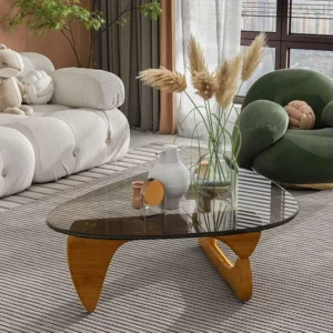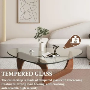 Coffee Tables for Living Room – Triangle Glass Coffee Table with Wooden Base Mid-Century Modern Abstract End Table